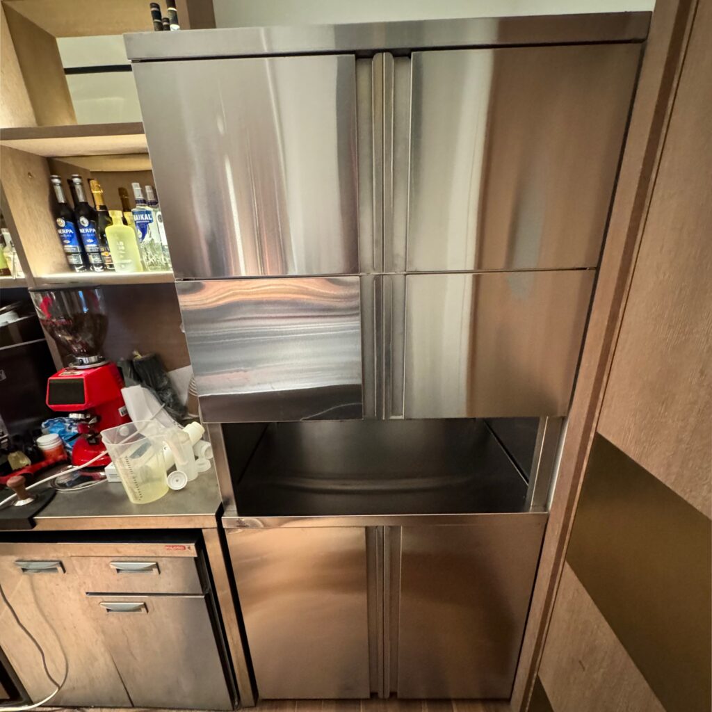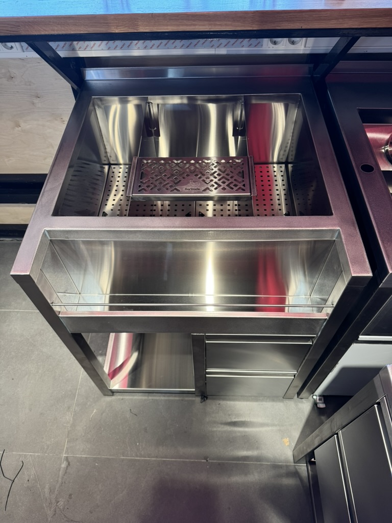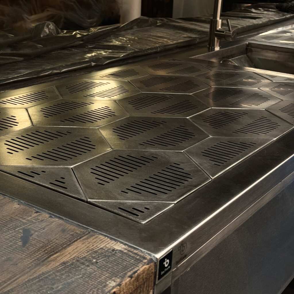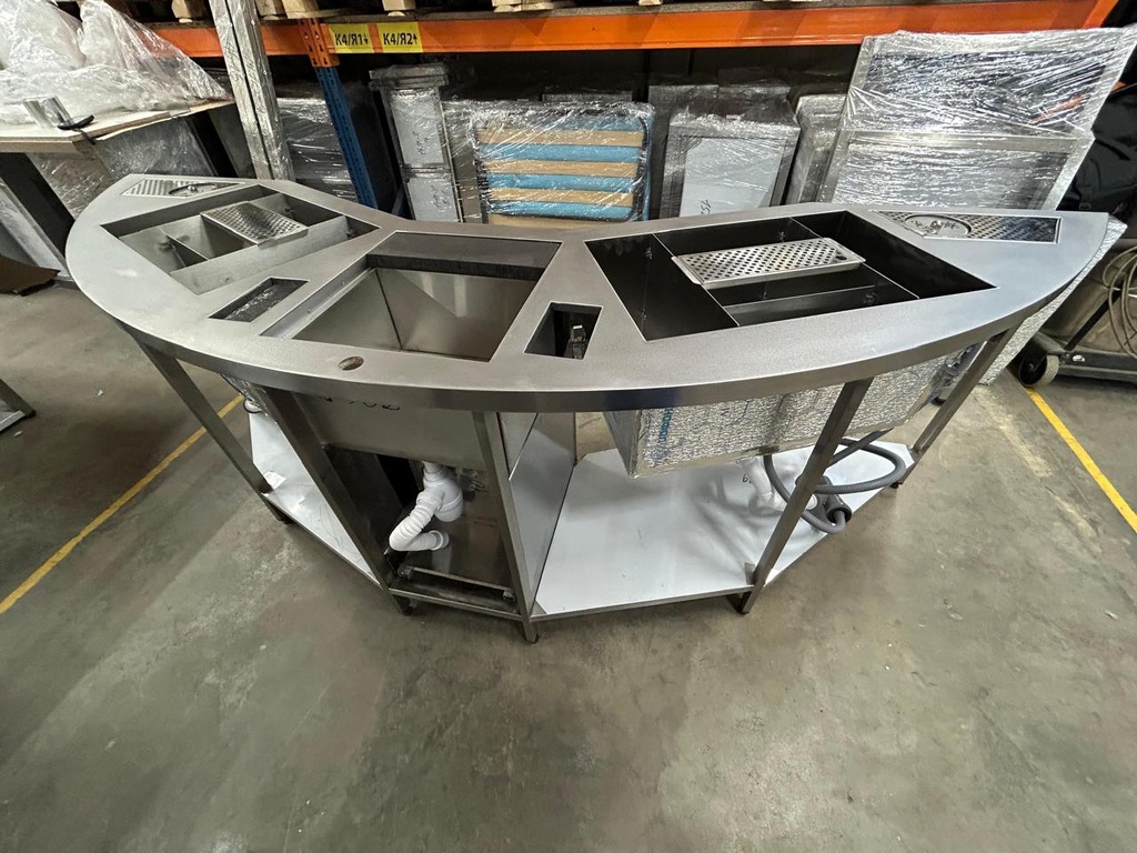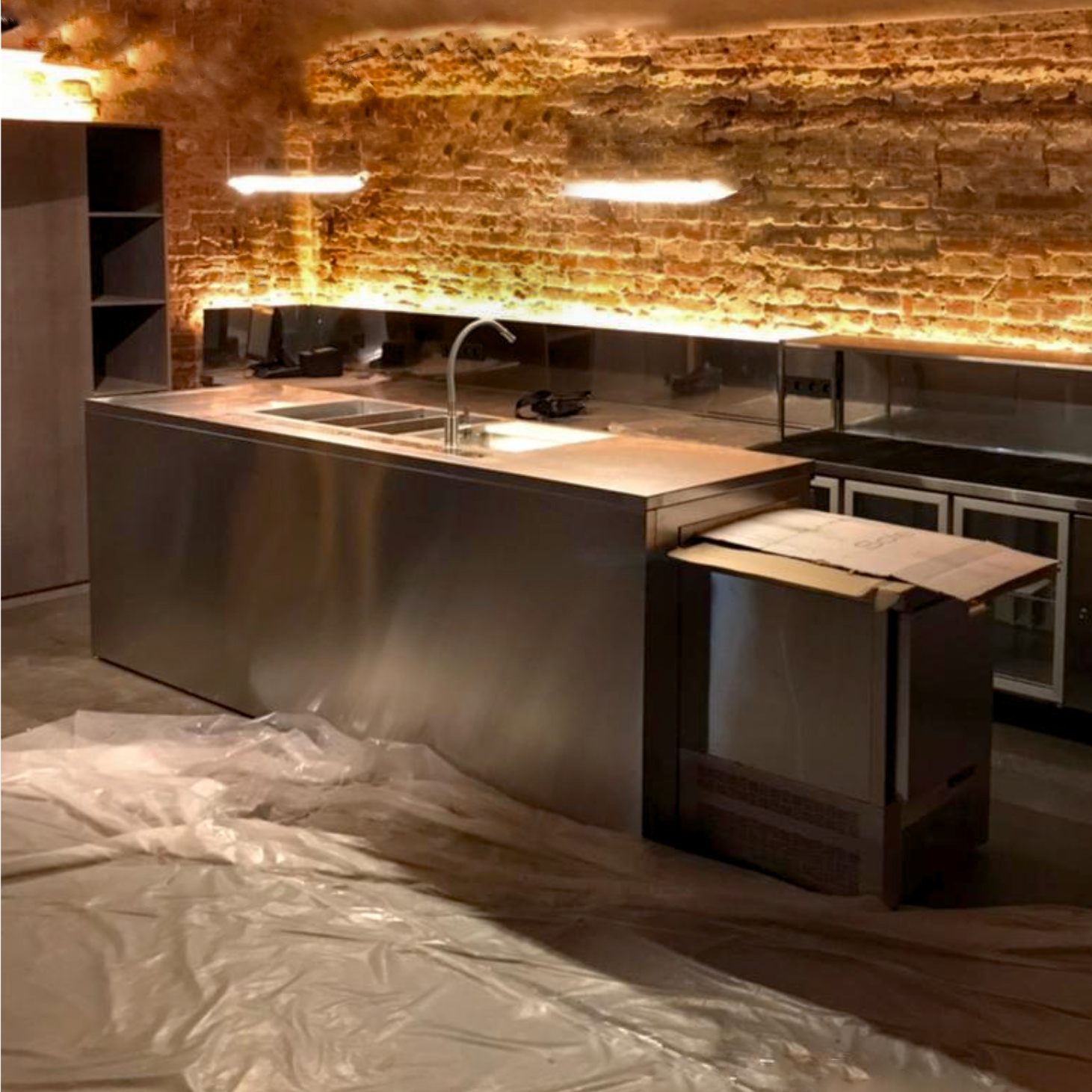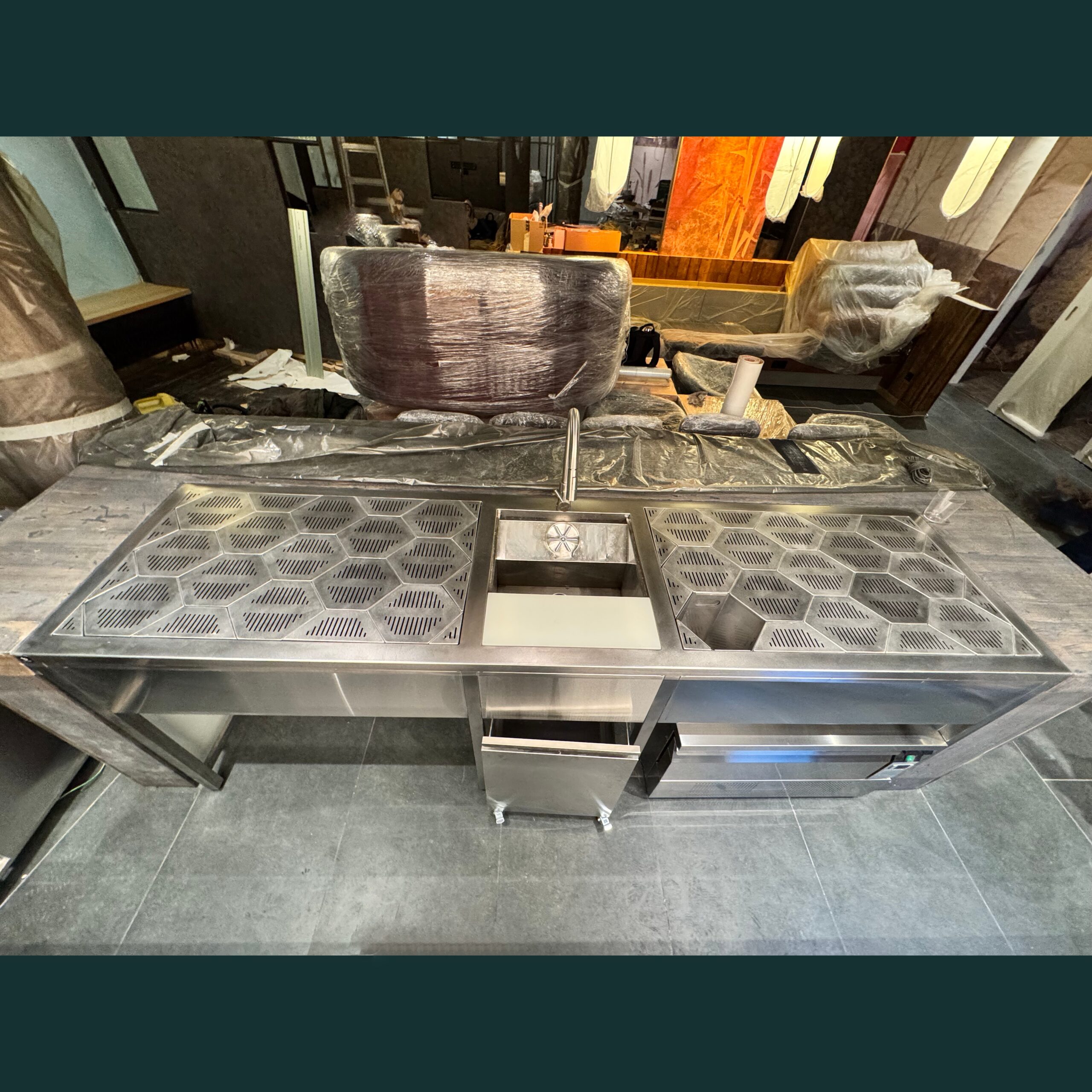 Именно с такими словами начался наш диалог с Андреем Кобяковым. Он просил сделать соты для лаборатории ресторана «Паста и Баста» (да-да, у них есть лаборатория, где ребята придумывают эксклюзивные коктейли для своего заведения). Андрей поделился опытом заказа барной станции с сотами - то соты ржавеют, то углы в ванной не закрыты и остаются «дырки», то поверхность неровная и посуда стоит неустойчиво и т.д. Мы всегда учитываем все нюансы и доводим продукт до идеала. Соты выполнены из нержавеющей стали AISI 304, поверхность идеально ровная, промежутки между сотами и бортами отсутствуют, на станцию установлены дверцы-купе. Теперь создавать шедевры стало удобнее и приятнее!